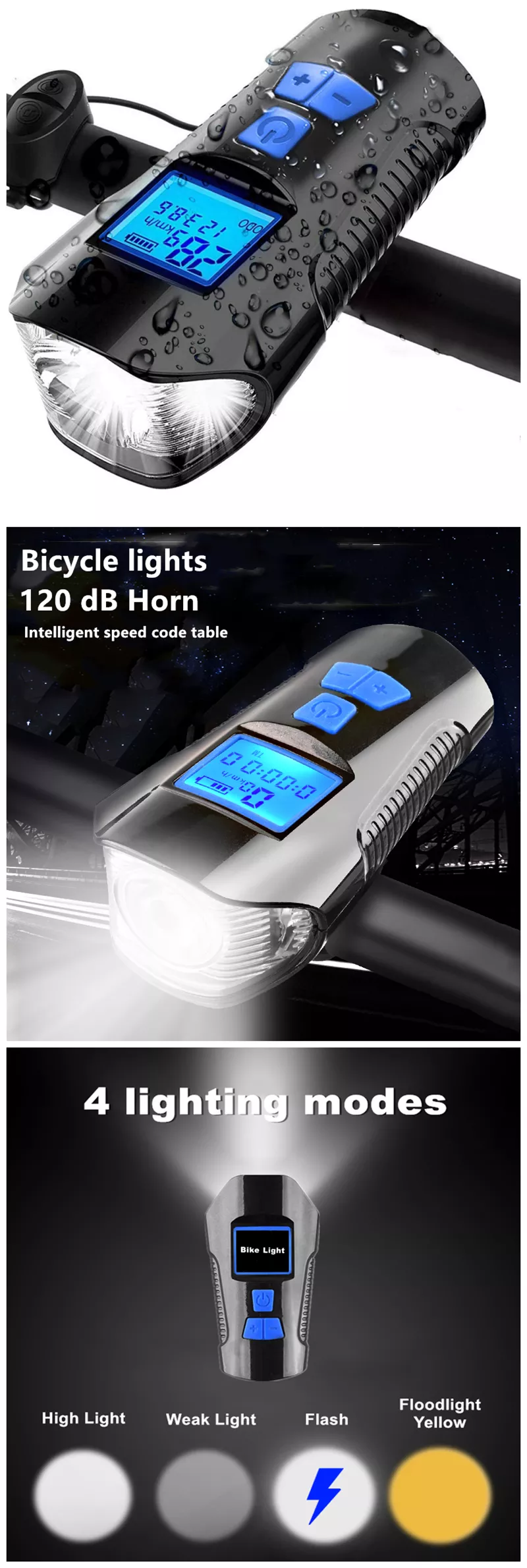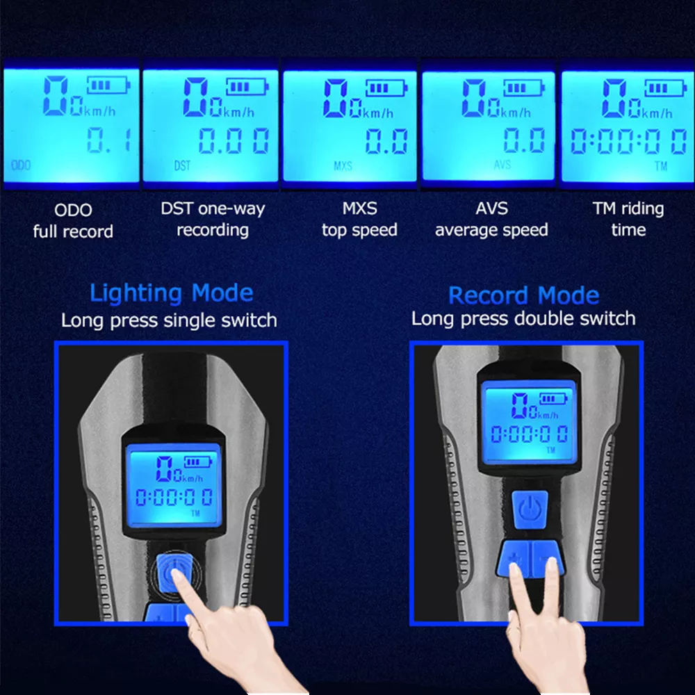 - Różne zastosowania - ta lampa rowerowa może być używana jako konwencjonalna latarka do wędrówek, biwakowania, spacerów, przerwy w zasilaniu w domu lub biurze latarka awaryjna itp. Wspólne rowery, takie jak rowery szosowe, rowery górskie i rowery składane są kompatybilne z tym prędkościomierz rowerowy.