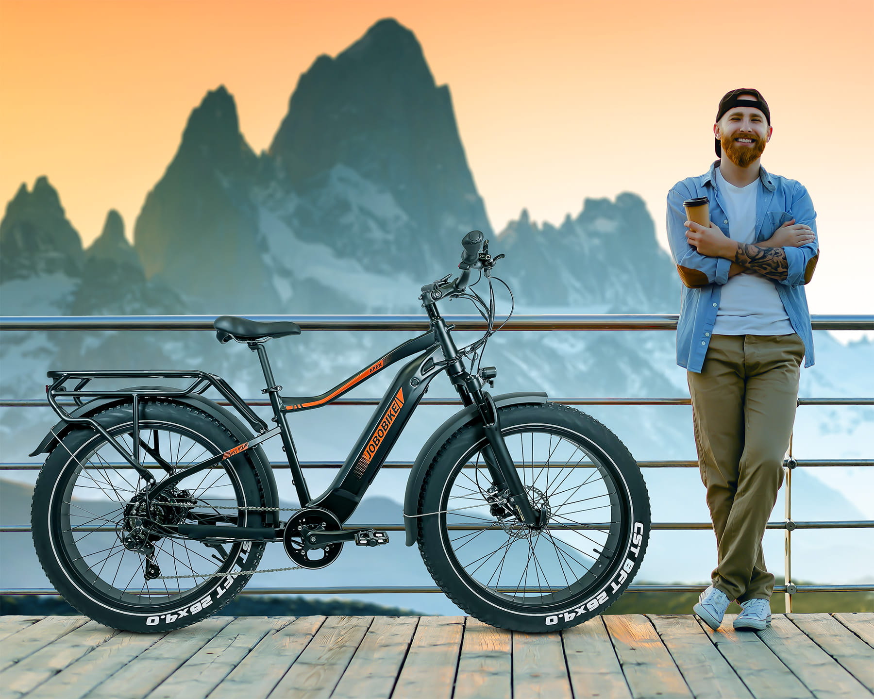 Rower elektryczny JOBOBIKE Apex czarno/pomarańczowy hydraulika