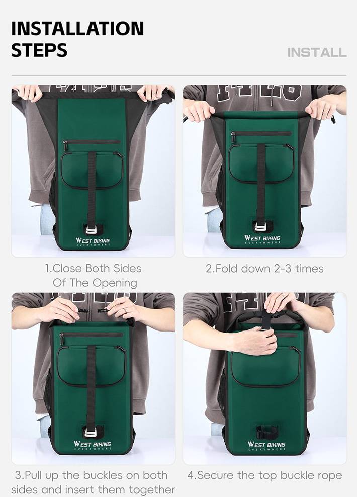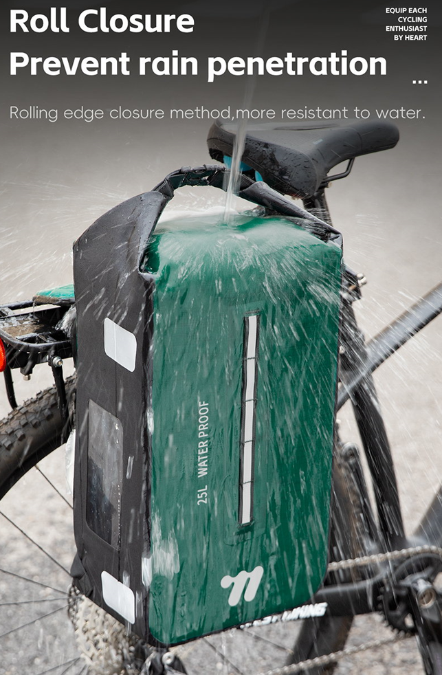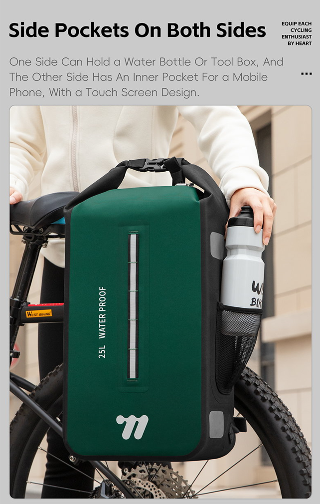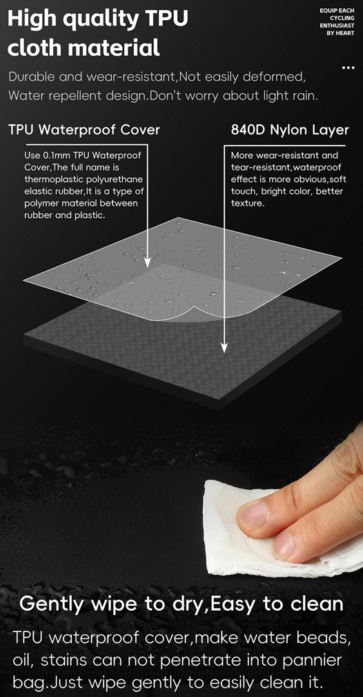to funkcjonalna torba, idealna do transportu bagażu podczas jazdy na rowerze, zwłaszcza w warunkach outdoorowych, takich jak kemping czy wędrówki. Wykonana z materiału TPU, charakteryzuje się odpornością na wodę, zarysowania oraz zużycie, co zapewnia jej trwałość i długowieczność nawet w trudnych warunkach.